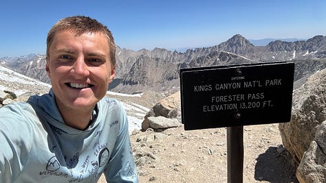 Another standing goal for me each year. This year, I visited 13 National Parks: Grand Teton, Haleakalā (twice), Killarney (in Ireland, with my friend Federico), Yorkshire Dales (with my girlfriend and her friend, Libby), Loch Lomond and the Trossachs (on a Scottish Highlands solo trip), Sequoia, Kings Canyon, Yosemite, Lassen, Crater Lake, Mt. Rainier, North Cascades, and Everglades. 7 of them (Sequoia —> North Cascades) I hiked through on the PCT