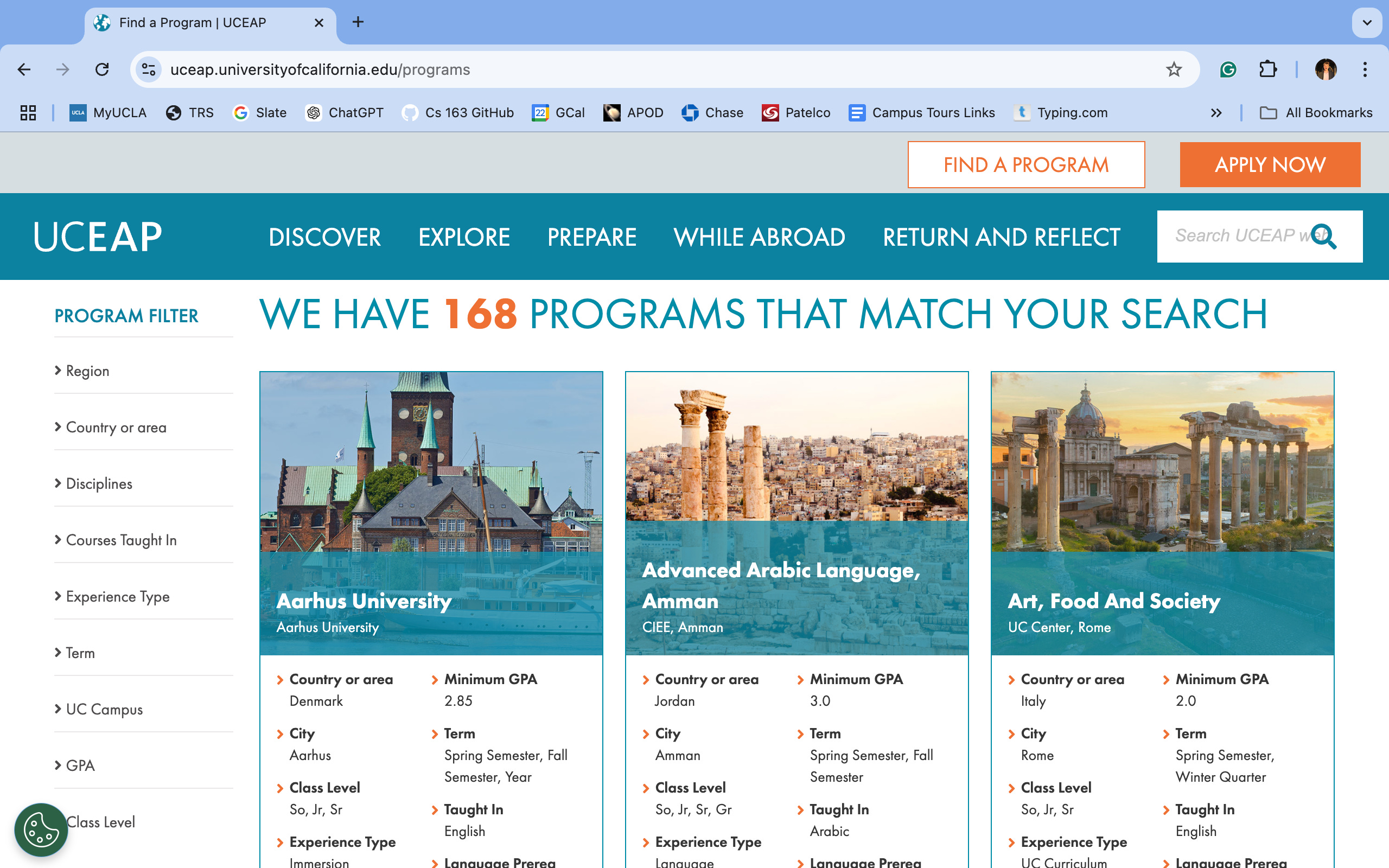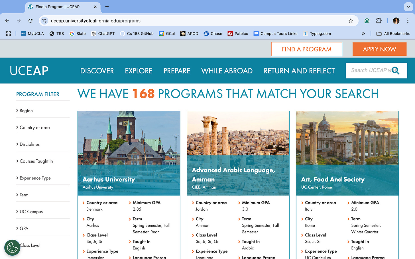 Here, you can select your major course of study to filter away programs that don’t meet you academic needs. While studying abroad in Paris, I took five courses total: three economics courses, a history GE, and a French language course. The three economics courses transferred directly to UCLA as upper-division economics electives and the history GE carried over as a required GE at UCLA. The French class just gave me some extra units back home!