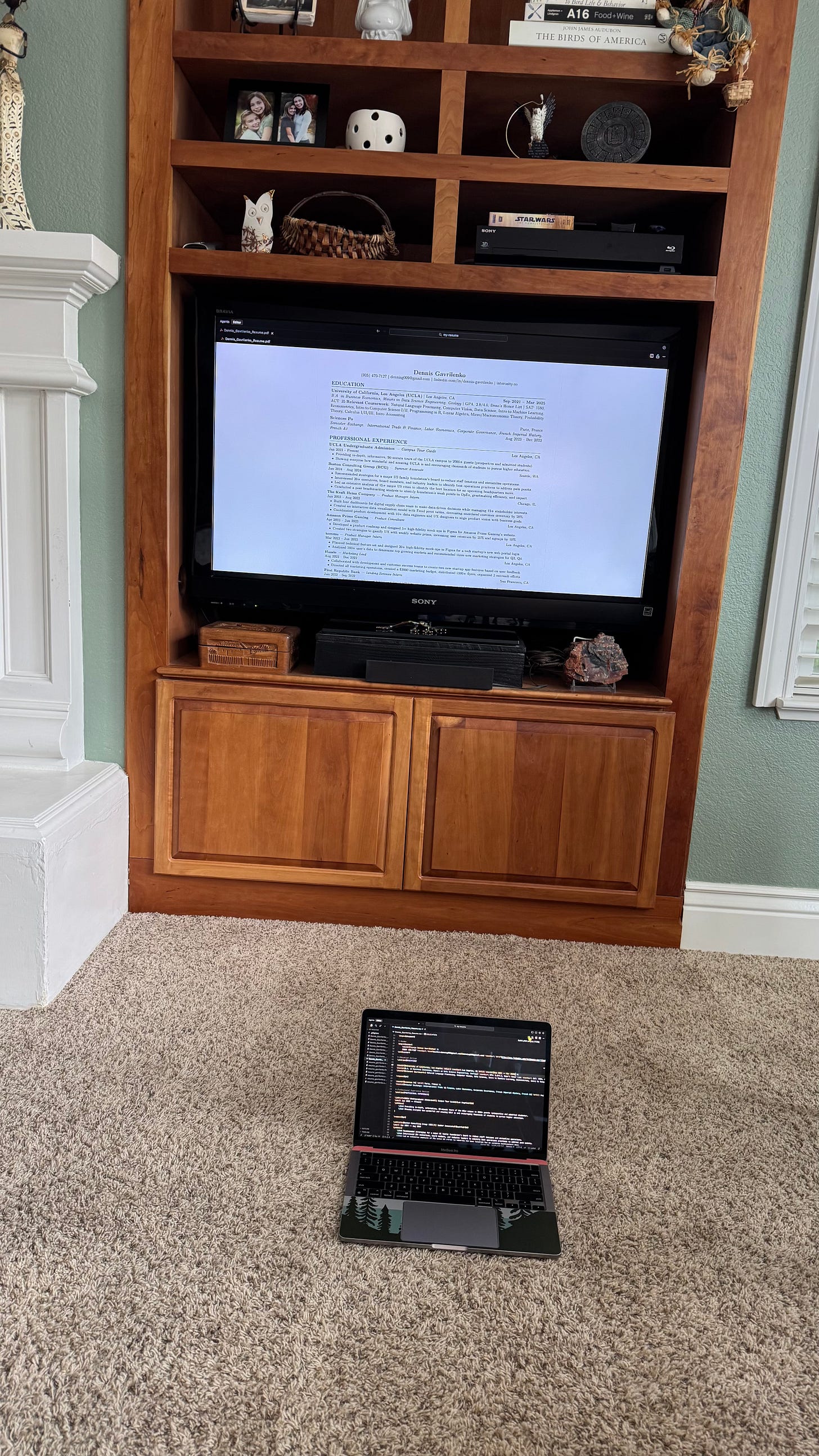 At this point, if you’ve taken a coding class before and can read the LaTeX document pretty easily, you’re pretty much set. Just use my code as a template for yours, edit as needed, and have yourself a resume that you can edit for free, forever! If you’re even more tech-savvy and code regularly, you can edit the LaTeX in your coding environment of choice (Cursor for me) and commit any changes to GitHub with git, and now you can see all the resume edits you make over time. This way, you can revert any bad changes, but even better you can see your resume changes and grows over time. Pretty neat, and something I wish I started tracking earlier in college as I completed internships and joined new clubs. If you have no idea what those last 2 sentences mean, don’t worry and pretend you never read them.
