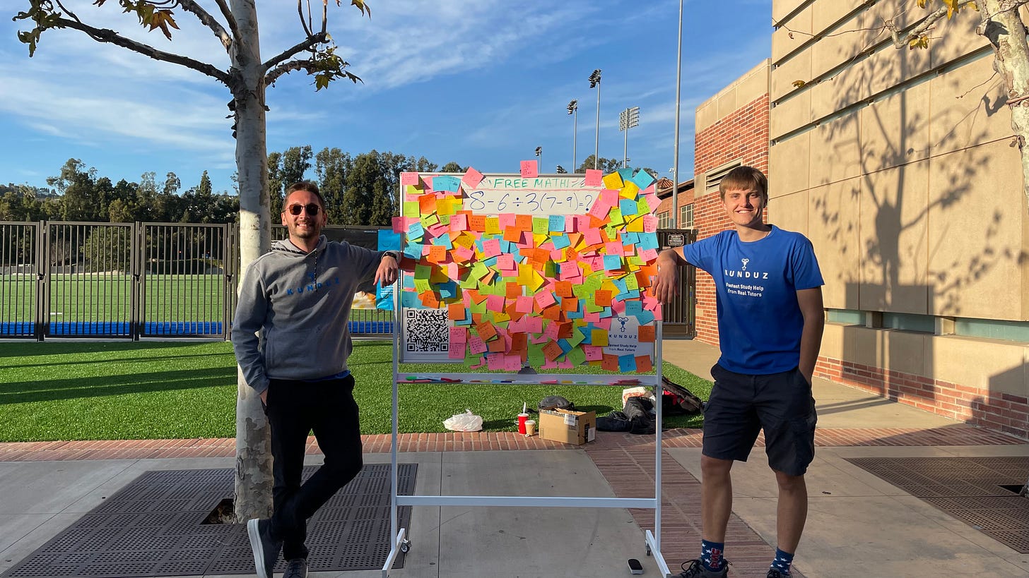 The internship was for a Turkish ed-tech startup called Kunduz that made a homework-helping app for students (think Chegg). I was hired as a brand ambassador and tasked with getting more students to download and use the app.