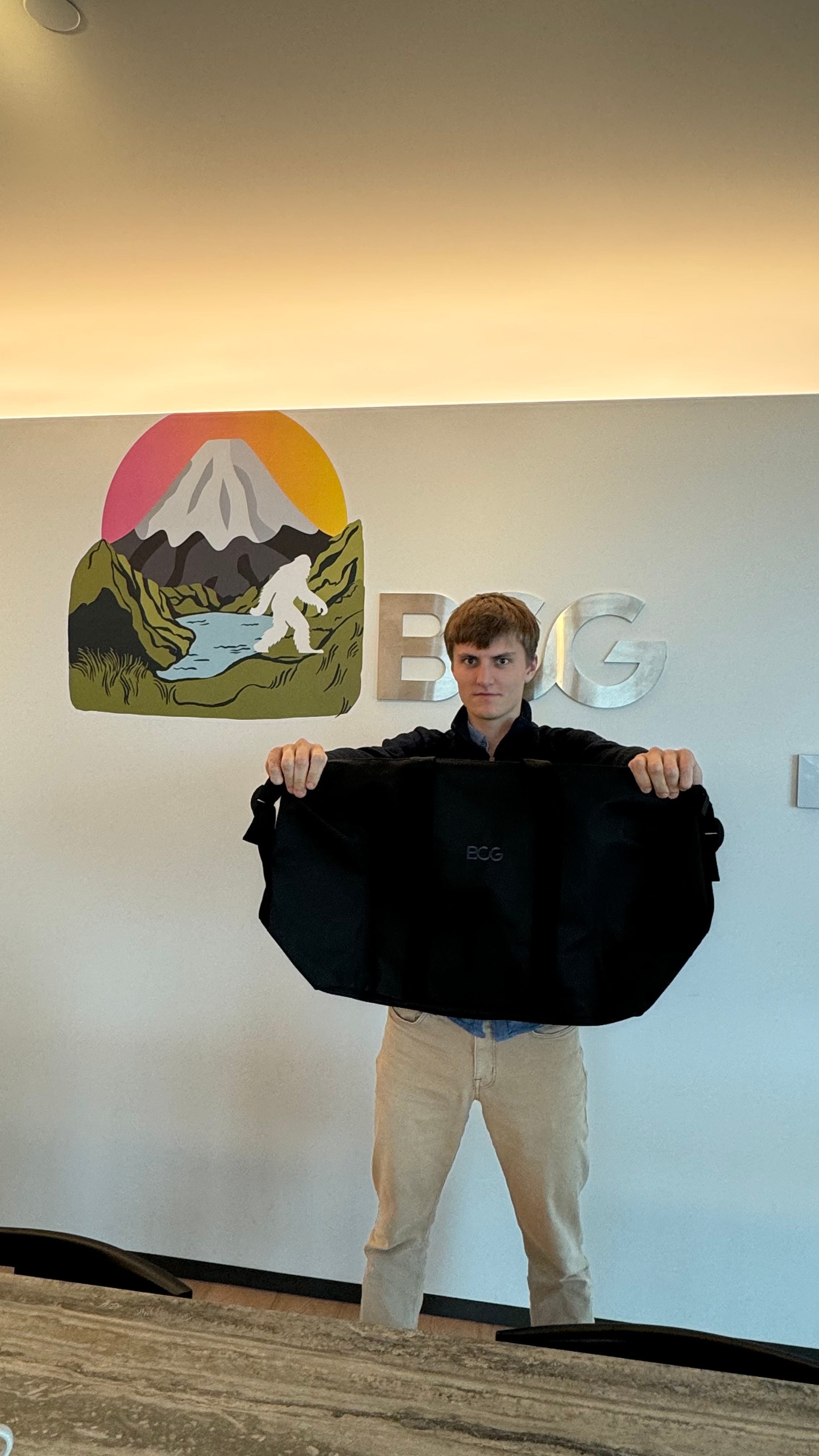 That if you get a return offer from the BCG Seattle office, you get a cool waterproof bag. Bag, secured! (the pictures from the following photoshoot with Ray are attached)